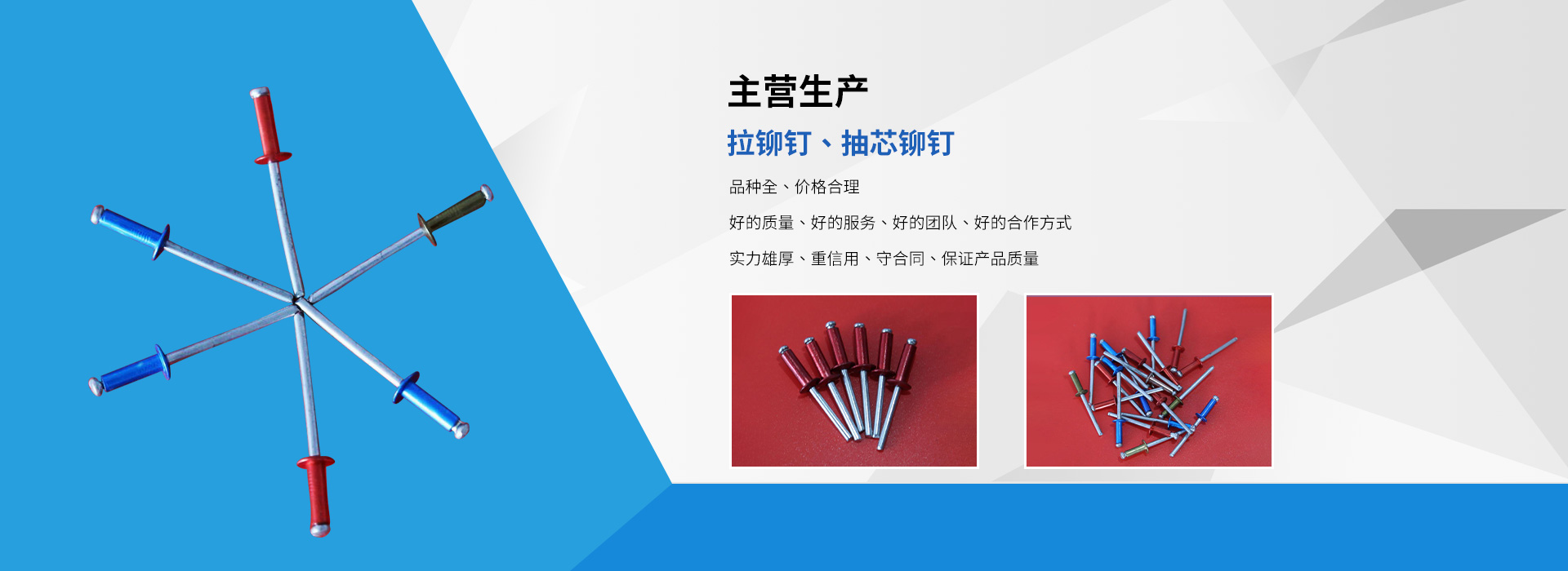 臨沂市龍牌異型鉚釘廠是拉鉚釘、抽芯鉚釘等產品生產加工的個體經營,公司總部設在臨沂市羅莊區,臨沂市龍牌異型鉚釘廠具有完整、科學的質量管理體,公司自成立以來,一直秉承“質量為準,客戶至上”的經營理念,以產品“品種豐富、價格合理”,在消費者當中享有較高的身分,得到了廣大消費者的信賴與好平,公司并與多家零售商和代理商建立了長期穩定的合作關系,公司實力雄厚,重信用、守合同、產品質量放心,以多品種經營特色和薄利多銷的原則,歡迎廣大消費者前來洽談業務!